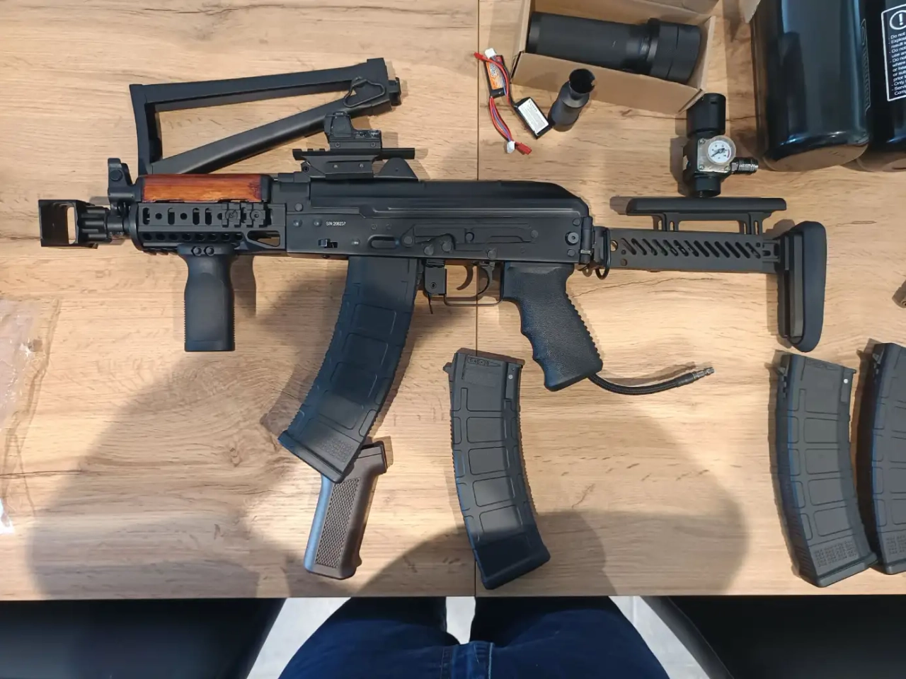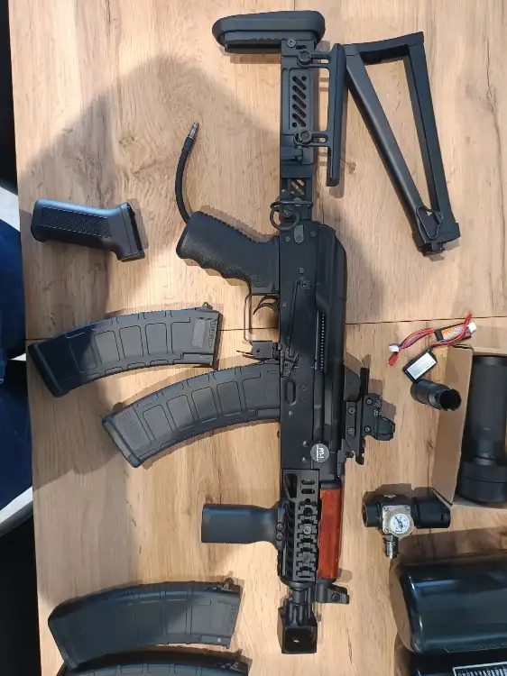 je mets en vente mon ak74su cyma custom en zentico NEUF (jamais utilisé en partie clairement) car je passe tout simplement en GBBR. la réplique possède un kit polarstar f2 v3 installé par un pro, un canon maple leaf 6.02 250mm, un joint hop up maple leaf silicon en 50 degrés. en externe il possède tout le custom visible, les accessoires donc 4 chargeurs dday switchable en 30 ou 140 coups, le red dot holy warrior avec son killflash, le cache flamme d'origine, le cache flamme monté ainsi que le silencieux psb-1 mini, la crosse d'origine, deux bouteilles hpa (une qui a un an l'autre 3 ans, la plus récente possède un preset amovible. aucune fuite bien evidemment, régulateur balystik et ligne en US le flexible est un souple tressé poignée pistolet d'origine et tous les autres accessoires
