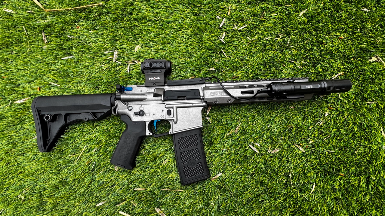 La réplique a été montée à partir d’une KRYTAC Barrett REC7 SBR en couleur Tungsten