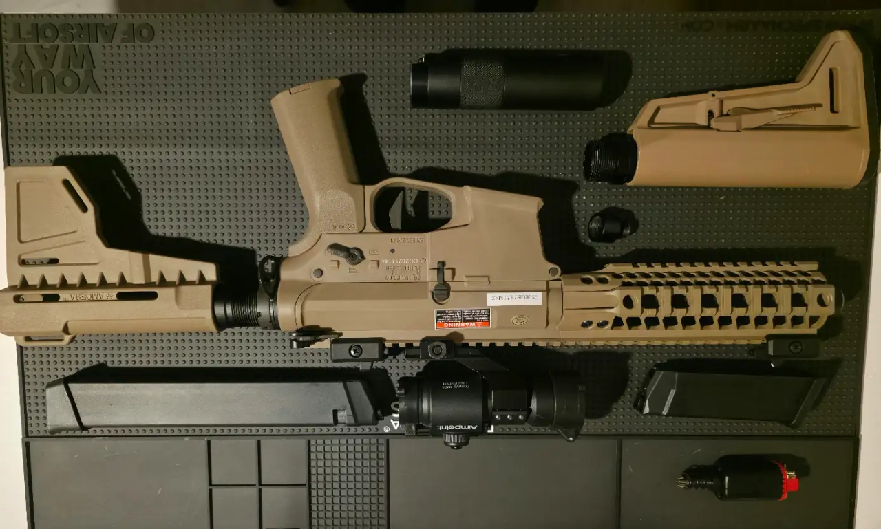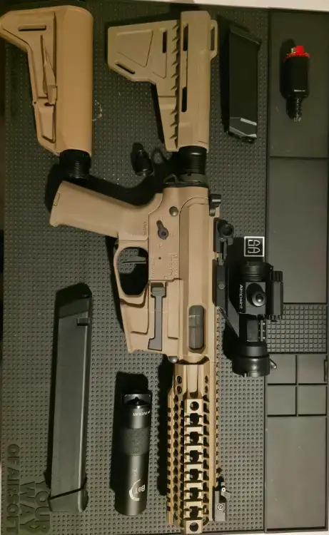 Je vend ce M45 AS de chez Ares acheté il n'y a même pas un an. Jamais servi sur le terrain parfait état. J'ai rajouté un moteur High Speed et un attache sangle. Je la vend avec une crosse supplémentaire car la crosse d'origine n'est pas pratique. Ainsi qu'un tracer et un point rouge. Oui oui je fais de la place.