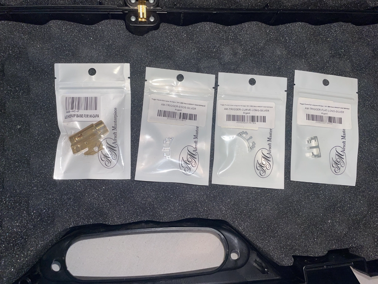Et a coté il y a 3 trigger Airsoft Masterpiece SILVER et un bloc hop up Airsoft Masterpiece GOLD