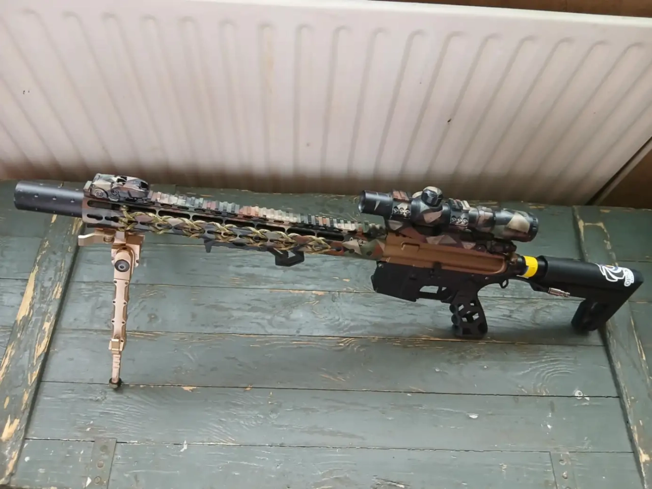 Il est équiper d'un kit HPA fusion engine couplé a un block hop up maxx model et d'un canon orga magnus 6.23mm