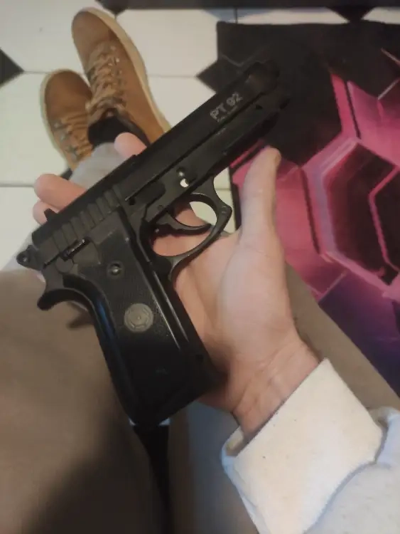 Réplique de 9 mm visible dans la police nationale équipée d'un chargeur 15 billes ainsi que d'un compartiment pour les cartouches de CO2 peut tirer jusqu'à 15 m recommandation ne pas utiliser en dessous de 8 m arme parfaitement entretenu utilisé sur quelques parties et en parfaite état de fonctionnement. Réplique rangeable dans un holster portable à la cuisse ou à la ceinture. Légèrement négociable