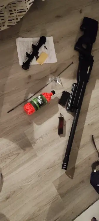 Réplique sniper fonctionne très bien avec visé petite un boulon pour déboucher et une cible avec des cartons pour mettre dans la cible c'est une cible en métal qui récupère les billes