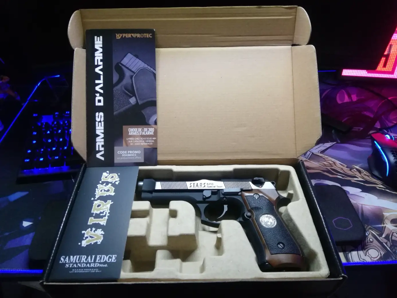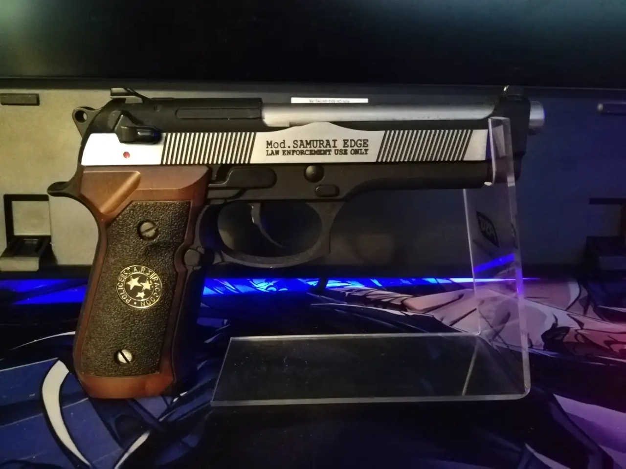 Réplique Résident Evil M92 Samurai Edge en parfaite état, acheter Neuf. Il n'a jamais servis. Juste éxposer en vitrine. Vendu avec sa boite. N'hésitez pas pour toutes questions.