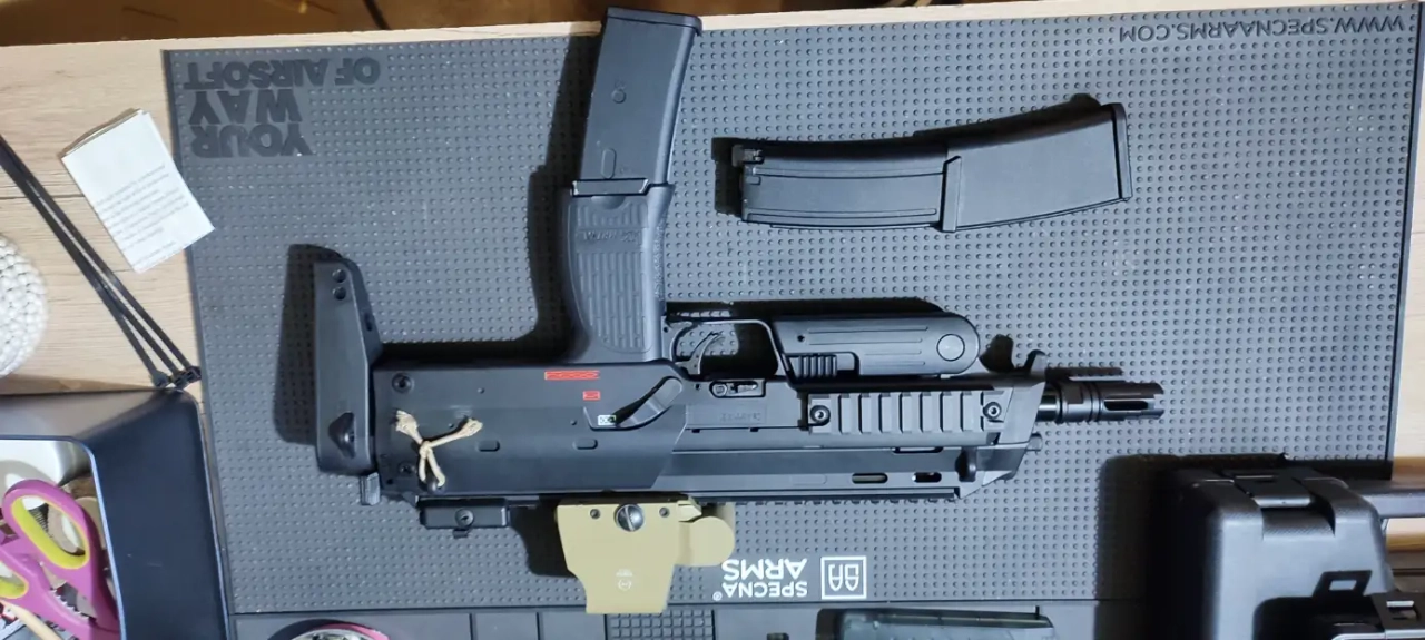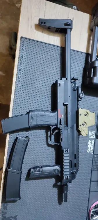 Vendu avec 2 chargeur dont un neuf même pas 2 mois. Super kick bien sec . Idéal cqb . Précis a 40m a la 0.28g .
