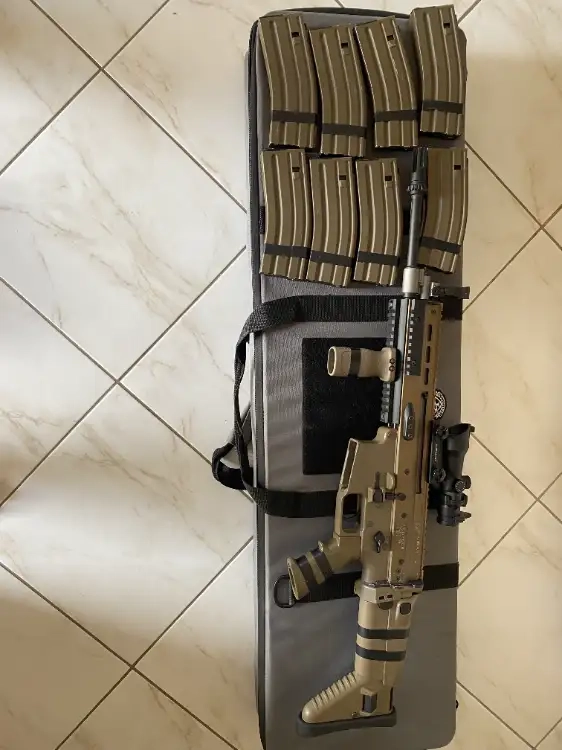 Vend scar-L Tokyo marui avec c’est 8 chargeur mid cap la viseur acog et poignée avant vendue avec.