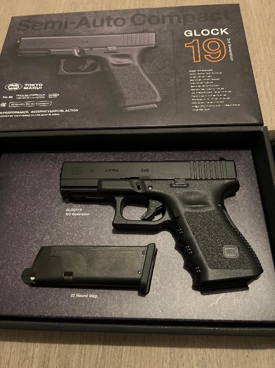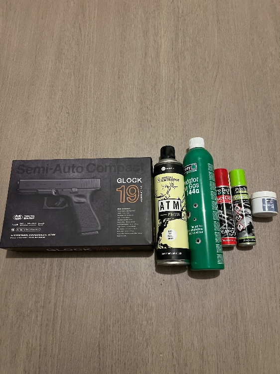 Bonjour, je vend une réplique de Glock 19 de la marque Tokyo Marui. Il est entièrement d'origine et a servis 1 seule fois, je le vend avec sa boîte d’origine,la notice,le chargeur,la tige de nettoyage,1bouteille de gaz ATM PSI110 (entamée)et 1 bouteille de gaz Abey Predator Gun Gas 144a(entamée),et1Silicon oil et 1 gun oil et 1 petit pot 50ml de graisse voilà n’hésitez pas à me contacter pour plus d’informations merci