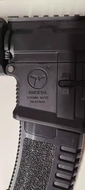 Une M4 amoeba long 330fps, batterie lipo 11.1v, canon 6.03 en 35cm avec 2 chargeur, garde main modulaire ( quasiment neuve )