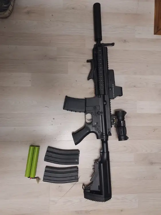 Bonjour, vend ma réplique AR4168 full métal Electrique, équipé d'une poigné courte ergo d'un viseur Holographique et d'une x3 rétractable et d'un silencieux, en très bon état,
