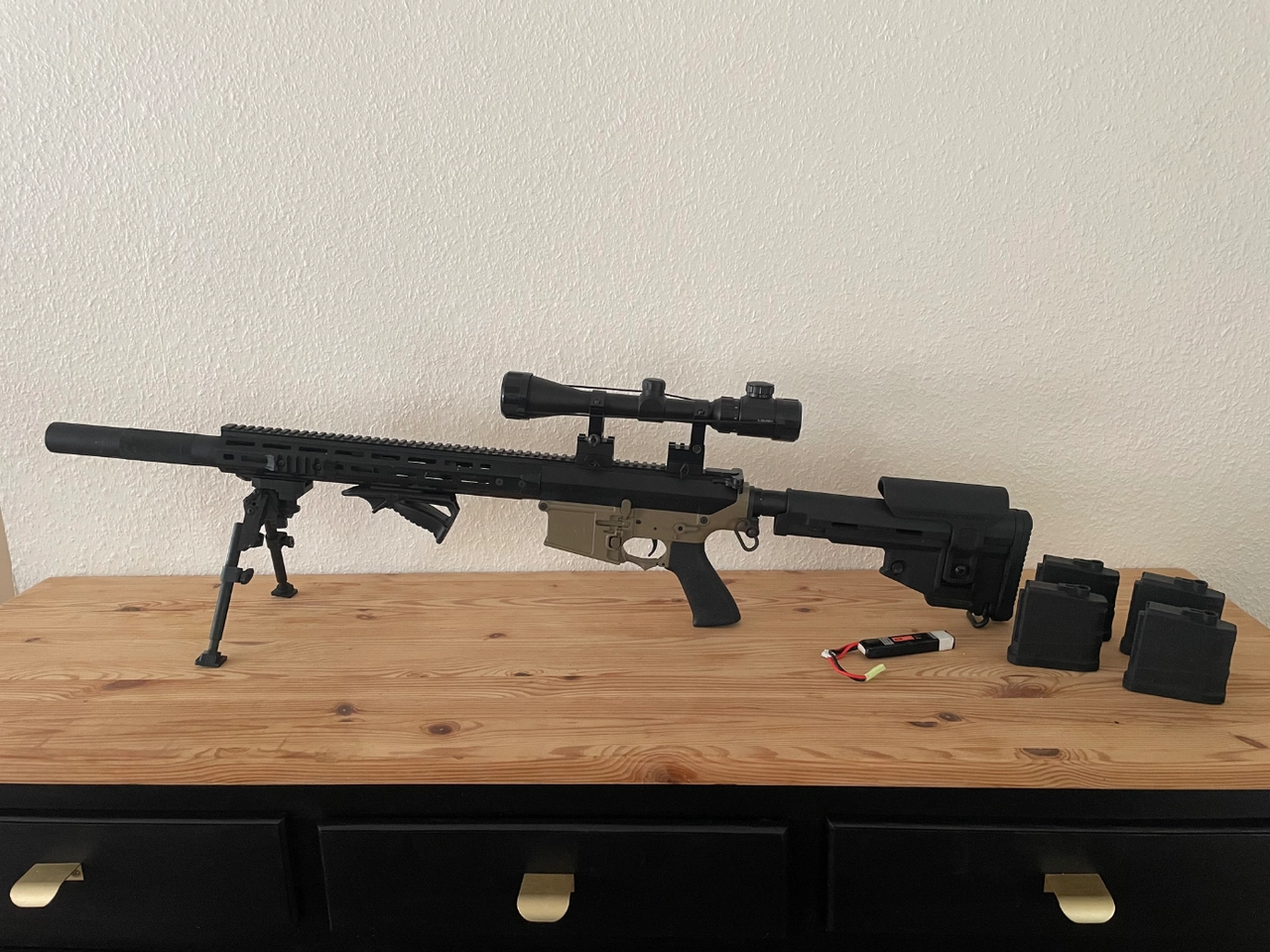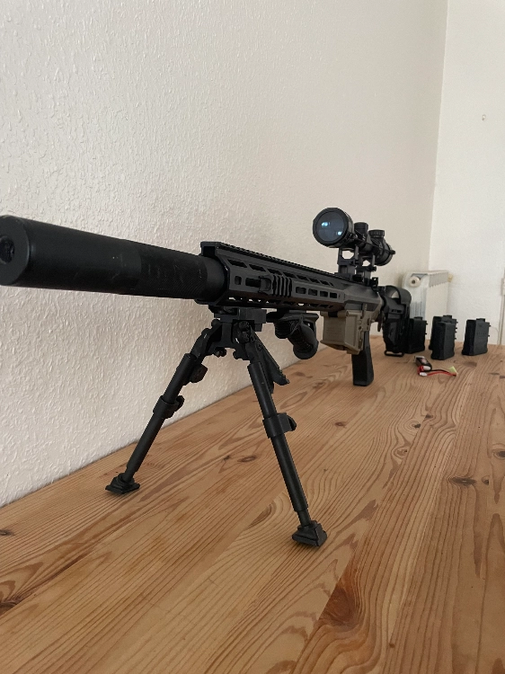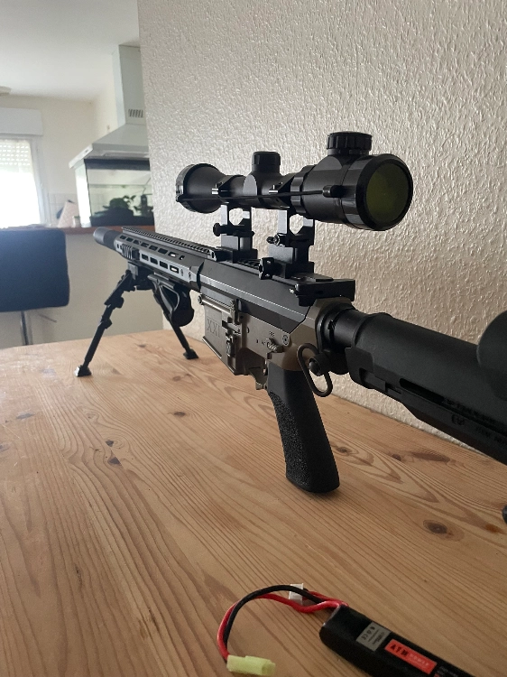 Je la vend avec sa lunette, son bi-pied, poignée avant, 4 chargeurs et 1 batterie.