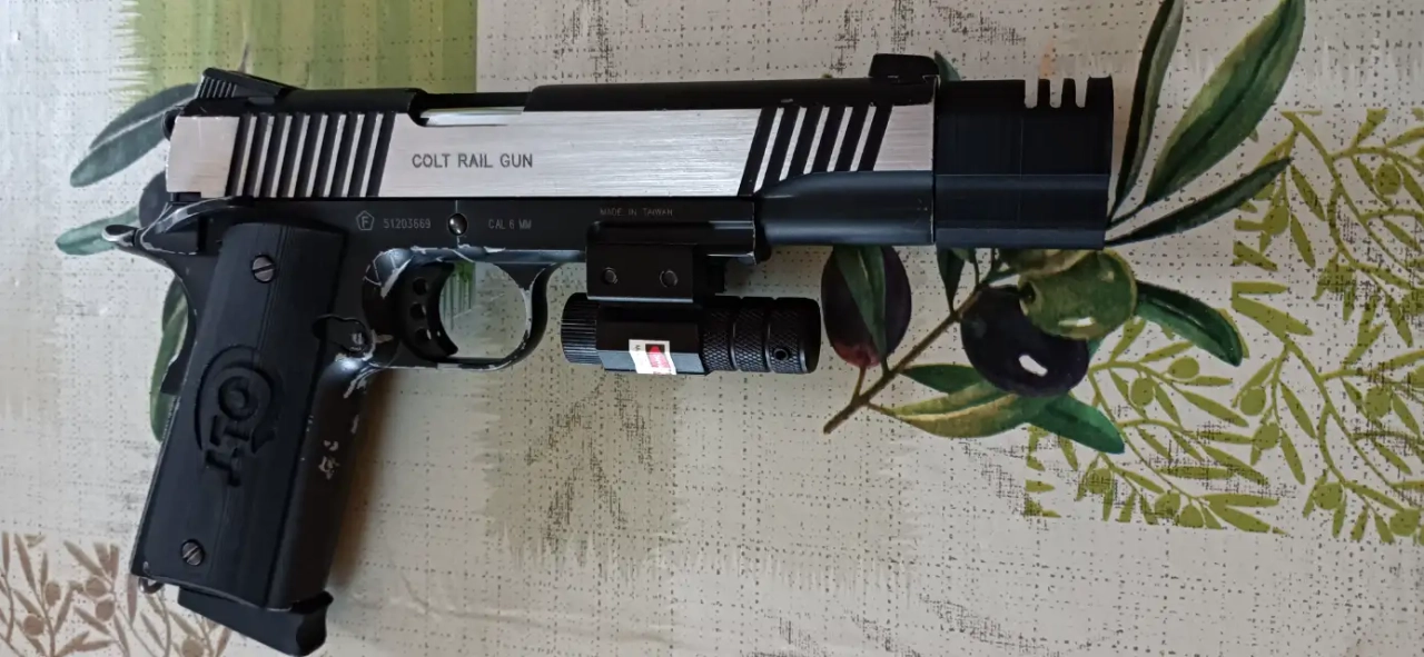 Equipé d'un compensateur, de grips siglé " Colt " et d'un talon de chargeur ergonomique