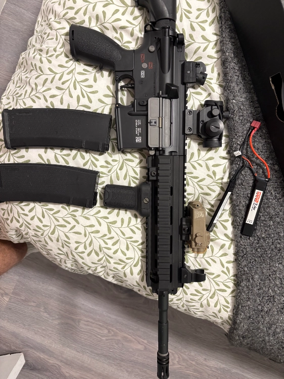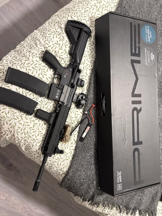 Bonjour je vends ma specna prime Hk416 neuve une sortie à ce jour vendu avec sa boîte + batterie lipo 7.4 et deux chargeur plus ressort d’origine et ressort M90 vendu sans viseur et sans poignée valeur en magasin 450€ remise en main propre sur Marseille je répond au 0751656129 négociable dans le raisonnable