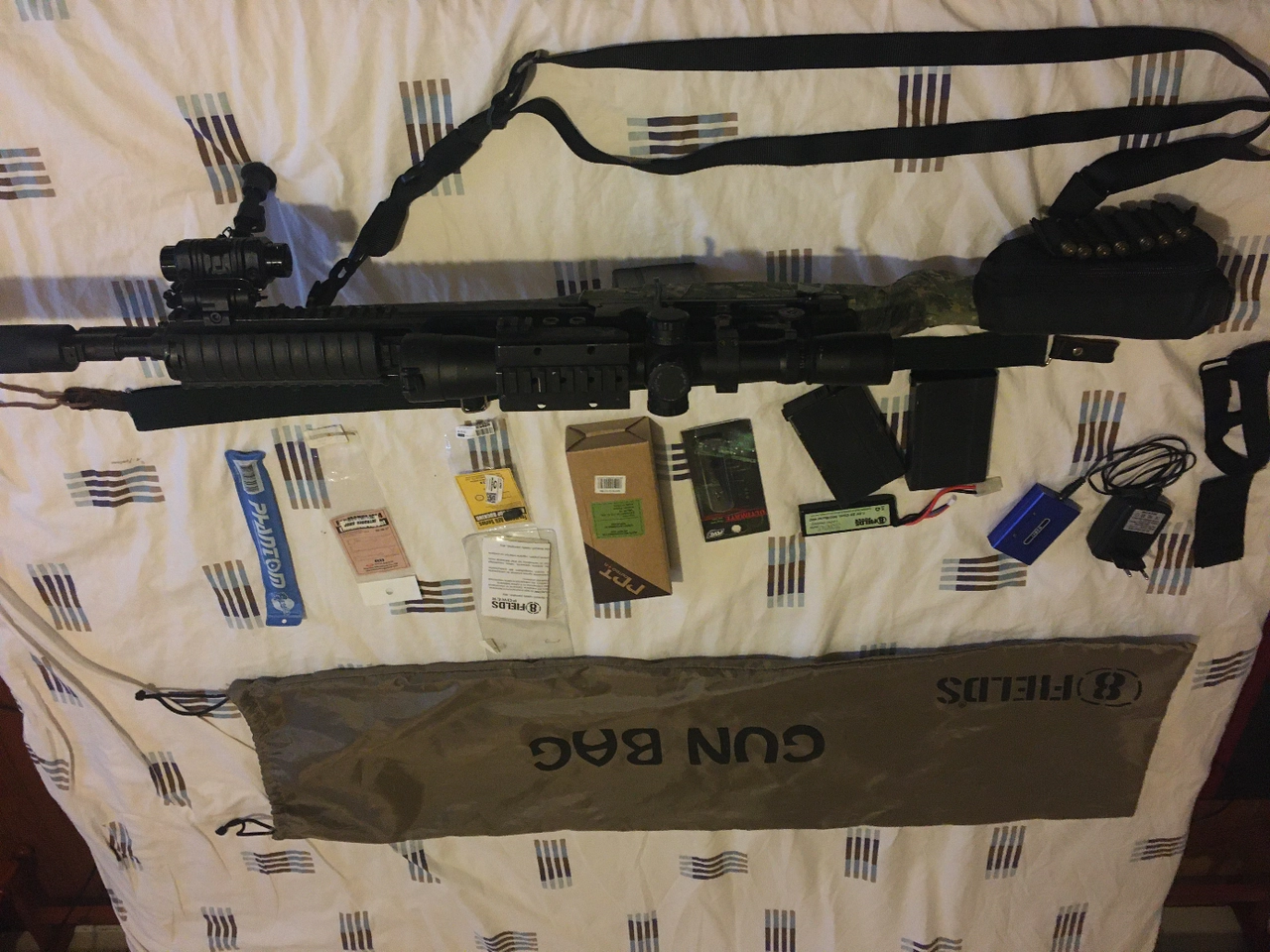 J'offre une sacoche gunbag 8field couleur OD et une protection en caoutchouc pour le butt de la cross.