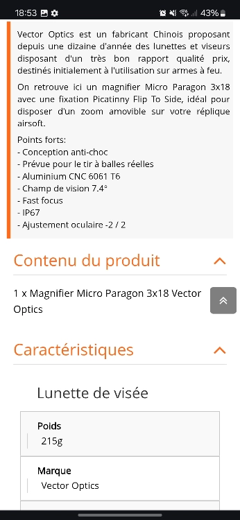 Bonjour je vend mon magnifier Micro Paragon 3x18 vector optics NEUF acheté 160€ sur ops store .