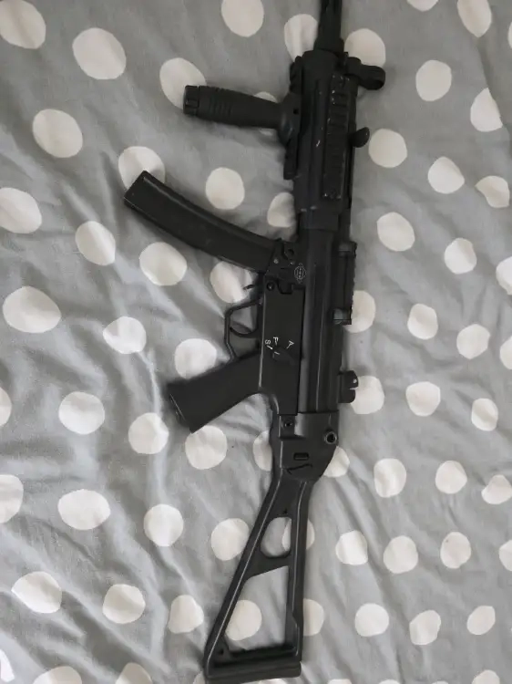 Réplique qui possède du vécu, il y a quelques marques notamment au niveau de l'attache de la crosse pliante, réplique encore fonctionnelle, peut être une base marrante pour une upgrade et faire un EBB original.