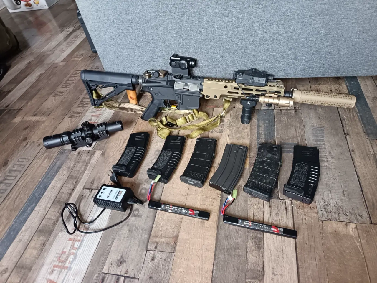 Je vends M4 avalon avec 6 chargeurs+ silencieux+ poignée+ lampe et an peq fonctionnel+ t1 fonctionnel+ 2 batterie+ chargeur de batterie + viseur magnum