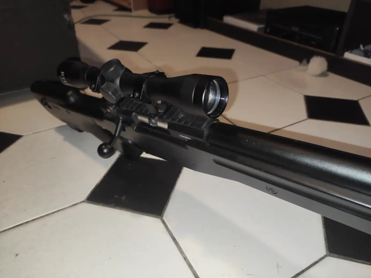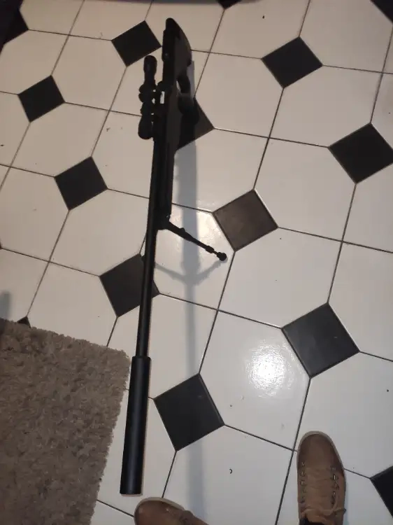 Fusil de précision équipée d'un silencieux au bout une des lunettes 4 x 32 ainsi que d'un bipied arme très peu servi en parfaite état bonne précision lunettes réglables ainsi que netteté de la lentille sniper acheter 250 € neufs rajouter pour ma part le bipied ainsi que le silencieux.