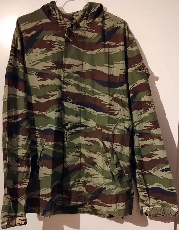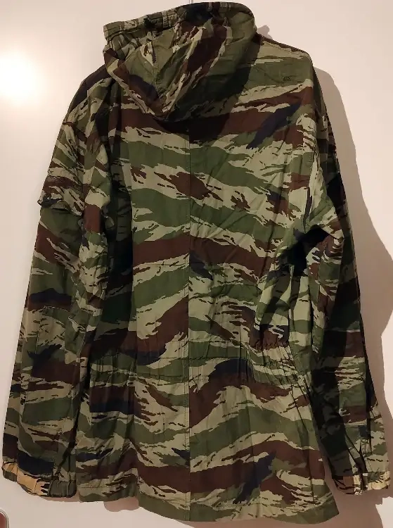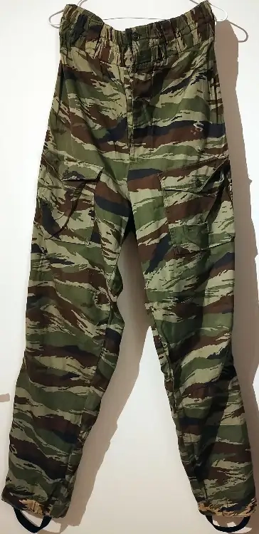 Peu courante sur les terrains d'airsoft. La tenue est légère et n'est pas neuve, le pantalon présente quelques traces d'usures. Un écorchure à un genou a été proprement réparée, les élastiques en bas de jambes ont été changé très récemment.