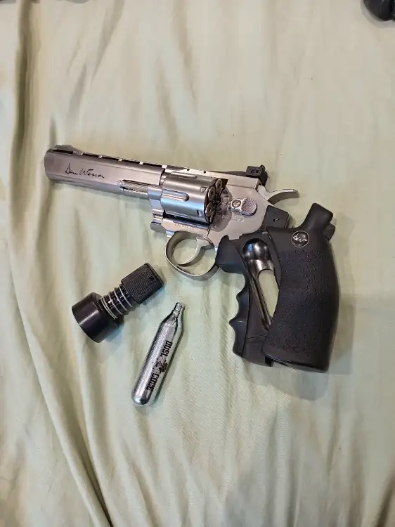 Je le vends avec une cartouche de CO2, les 6 douilles et un speedloader (comme sur les photos)
