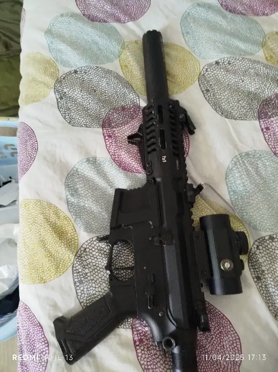 Fourni avec 3 chargeurs ,une crosse avec rallonge,une longue Lipo 11,1 , point rouge Vector optique, poignée incliné , traceur ect..