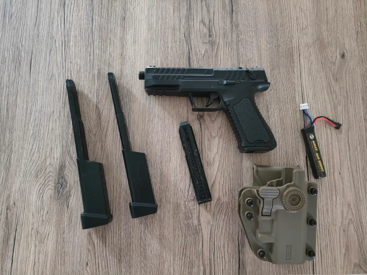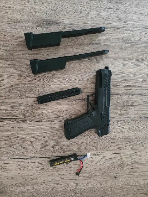 Vendu avec deux chargeurs Tokyo Marui 80 coups, une batterie 11.1V 700 Mah.