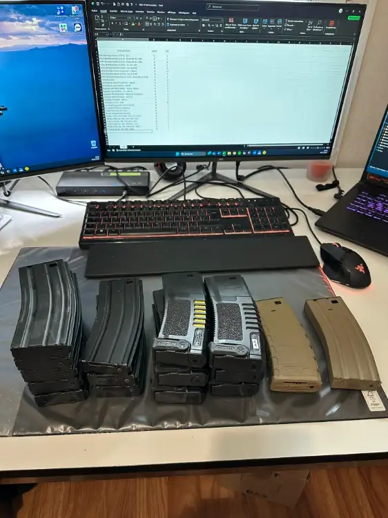 • Chargeur M4 Hi-cap full métal noir (N8) à 5,00 € soit 40,00 € au total,