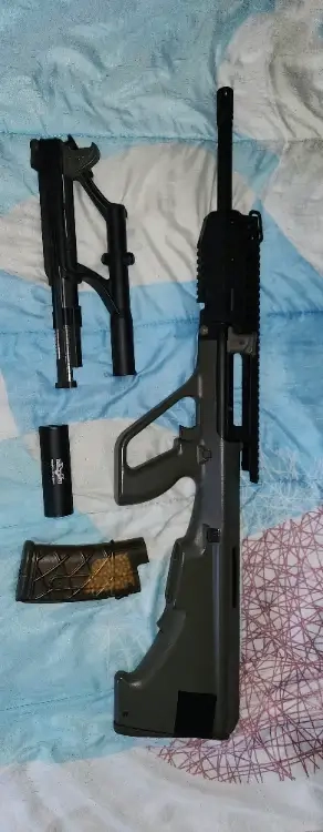 Bonjour, je vend un aug a2 avec un rail a3. 0.8 joule à la 0.25 g, environ 50m de portée. Fonctionne parfaitement en 7.4 et 11.1.