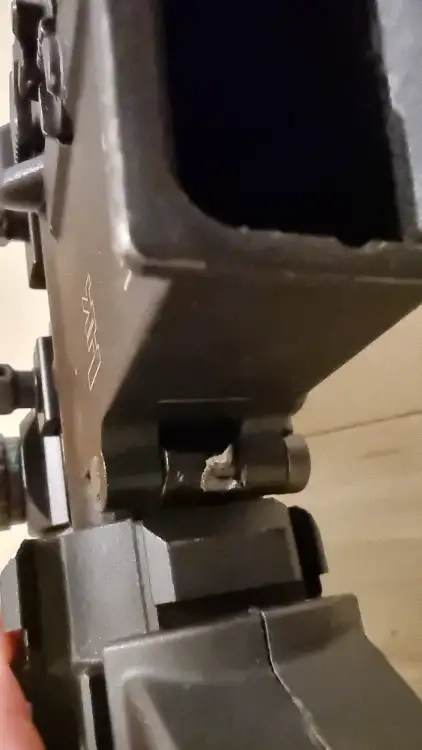 La réplique possède un accroc au niveau de l'emplacement de goupille du pontet.
