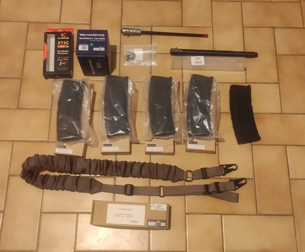 une poignée avant FDE, une attache sangle picatinny marron.