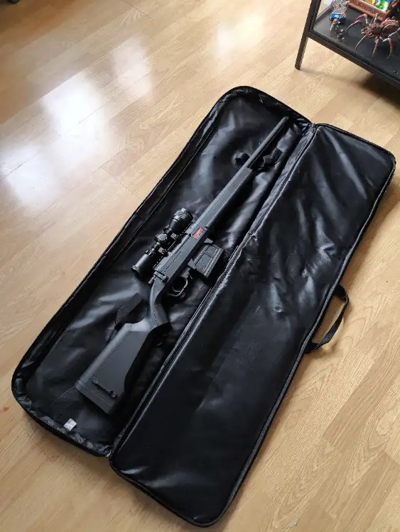 Vendu avec le sac de transport et la lunette le ressort a été changé pour atteindre du 450 fps.