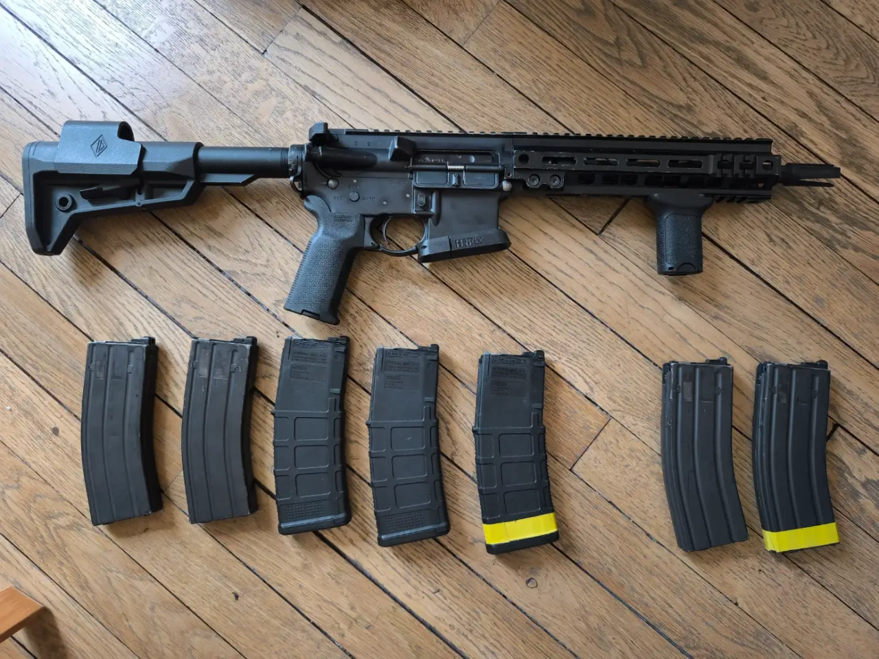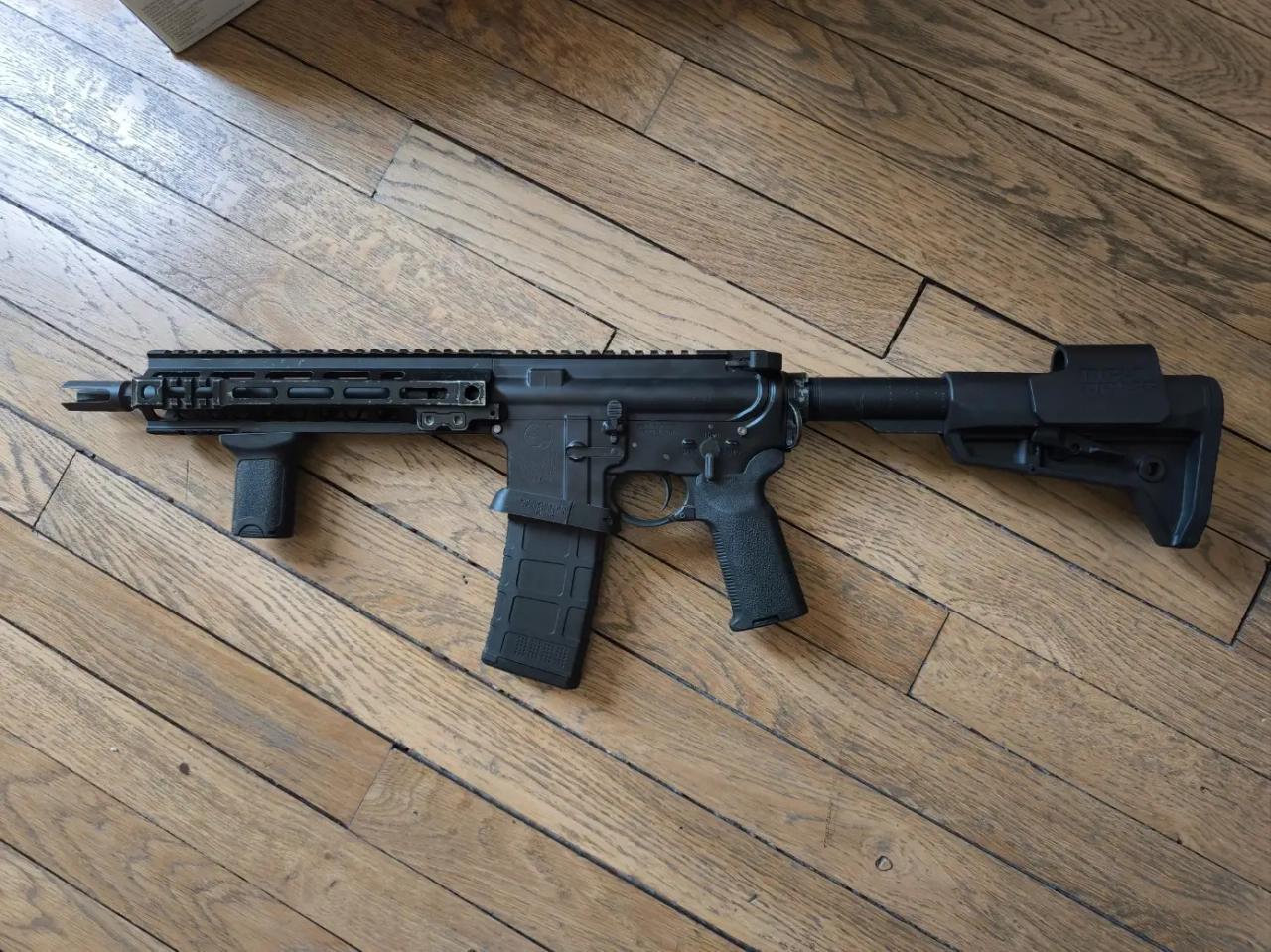 Le buffer et le nozzle d'origine ainsi qu'une poignée avant sont fournis