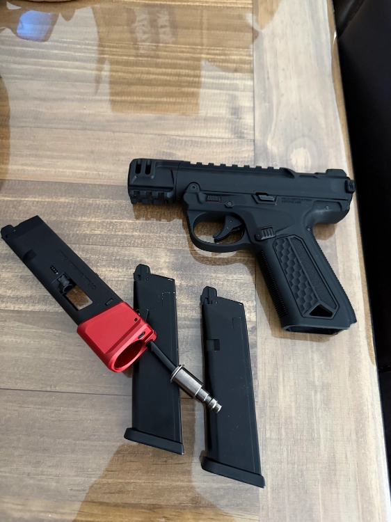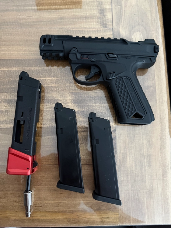 bonjour , je vend un aap-01 c cause changement de projet . en bon état , canon crazy jet , joint hop up quantum tête de piston tti. tout le reste d’origine . + 1 chargeur gaz , possibilité de vendre en plus un adaptateur hpa à cartouche de pompe en us . envoie ok paypal . visible sur angoulême. cordialement prix légèrement négociable