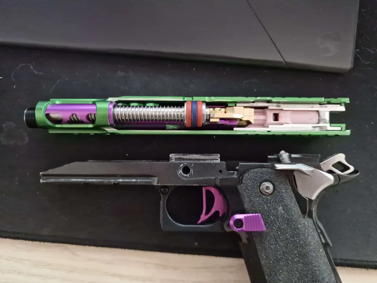 Je propose à la vente une réplique type Hi-Capa 2011 customisée haut de gamme, optimisée pour le speedsoft / speedQB. Montée à partir d'une base TM fiable et upgradée avec des pièces internes et externes de qualité, cette réplique est conçue pour la performance, la réactivité et l’esthétique.