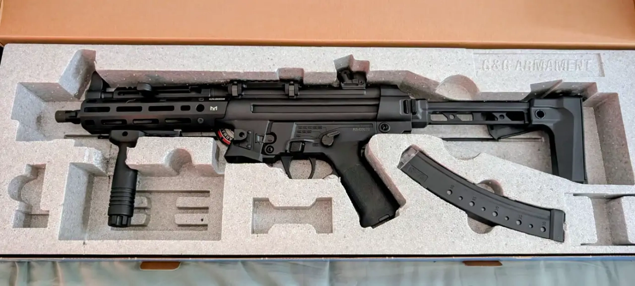 Vends réplique MP5, TGM R5 ETU, avec chargeur de batterie et poignée démontable.