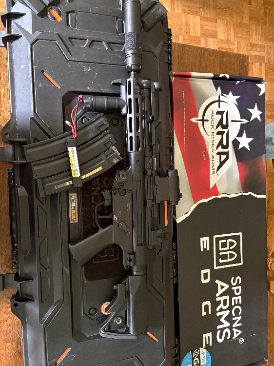 Elle est d'origine avec une gearbox V2 hispeed, la réplique fonctionne parfaitement, elle n'a jamais pris l'eau, toujours entretenue après chaque parti.