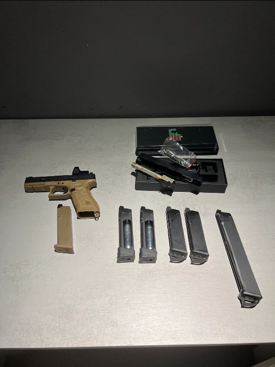 Je vends ce superbe Glock 17 Gen5 French Edition de chez VFC / Umarex, version GAZ, équipé d’une culasse custom + viseur point rouge.
