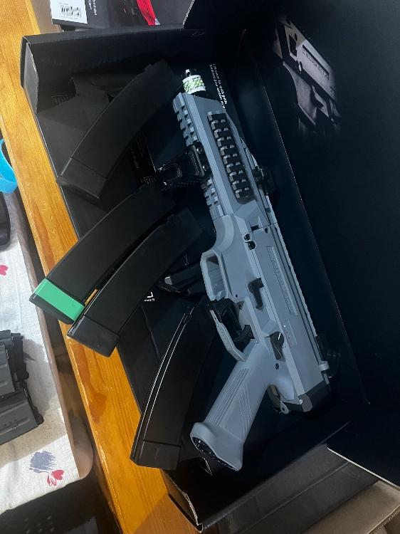Scorpion evo ASG modèle Gris, la réplique est quasiment neuve, 2000 billes tirées max, elle marche du tonnerre !!