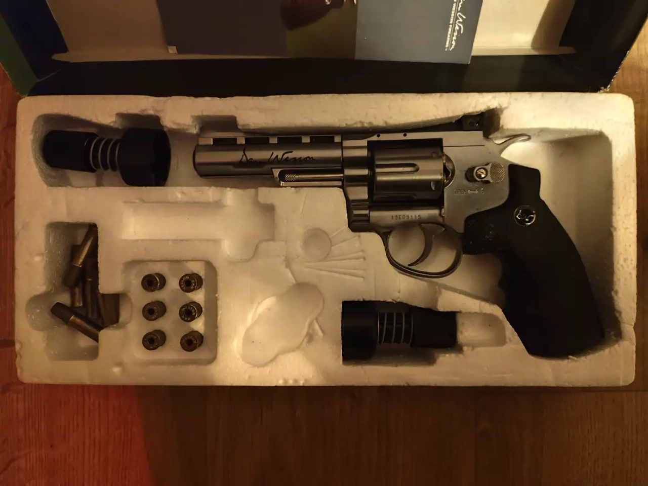 Vendue avec 12 cartouche "forte puissance" (~2 joules) et avec 2 speed loader.
