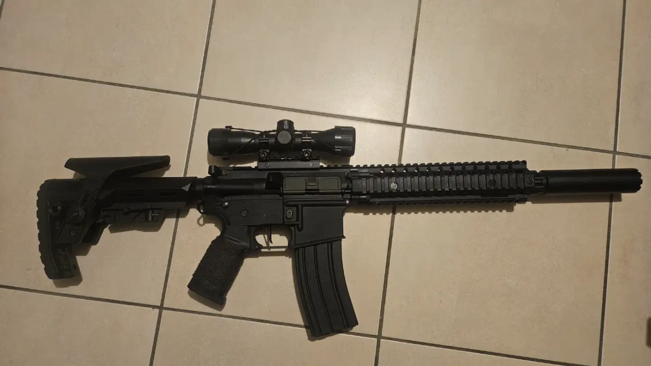 La réplique est vendu 250e FDP out avec son emballage d'origine, le cache flamme d'origine, un chargeur type STANAG, une lunette VICTOPTICS de la marque VECTOR OPTICS reference B1 4x32C, une crosse avec appuie joue réglable et un modérateur de son. Elle est évidemment ready to play, elle tourne comme une horloge. Aucun frais a prévoir car tout est neuf dessus. Je la vend car je passe sur du GBBR