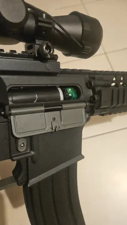 Le corps est fabriqué en nylon renforcé de fibres, offrant résistance mécanique et finition mate réaliste. La détente, la garde de détente, la poignée de chargement, le canon externe et les fixations QD sont en métal, augmentant la durabilité et le réalisme. L'ensemble est solide, bien ajusté et sans jeu, garantissant un confort optimal pendant le jeu.