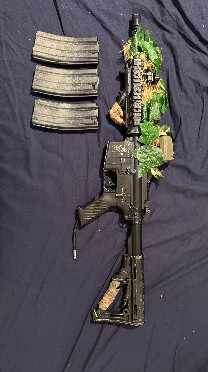 Je vend cet magnifique M4 kings arms monté avec un wolverine inferno gen 2 avec sont points rouge vector optics et 3 chargeur