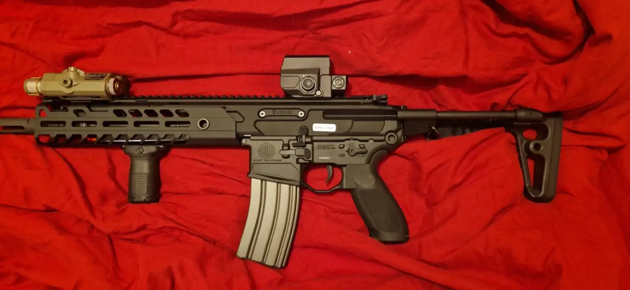100% d'origine, avec 2 rails M-Lok, son chargeur Hi-cap 300 cps, sans équipement ni batterie, dans sa boite d'origine.