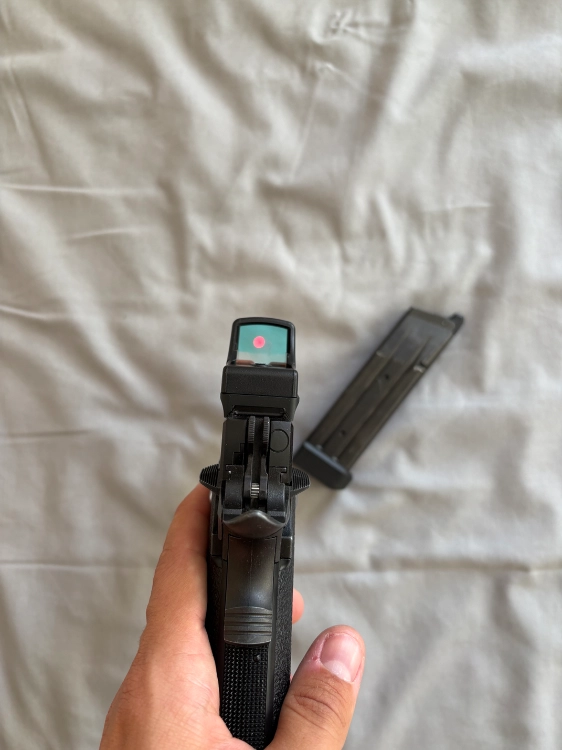 Avec un viseur Marui Red Dot Micro Pro Sight, sur Holy Warrior Plaque RMR pour Hi-Capa