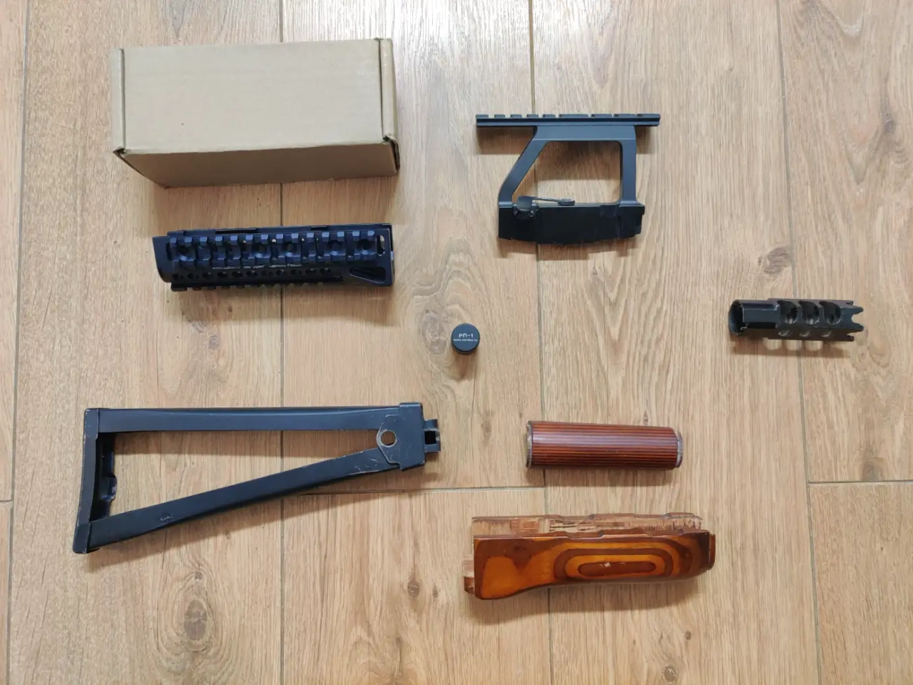 Kit Ak74S (Specna Arms) grip bois + crosse squelette acier (bon état) -> 25e
