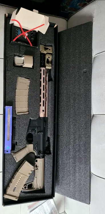 Je vends cette réplique M4 suite à une panne , la réplique ne marche plus honnêtement je sais pas du tout quesque sa pourrait être je ne m'y connais pas du tout, quand je branche la batterie elle tire 2 3 coups et après elle fait un bip bip électronique peut être que c'est un problème électronique ou même de batterie je ne sais pas du tout et j'ai pas envie de me prendre la tête, je le vends pour m'en débarrasser.