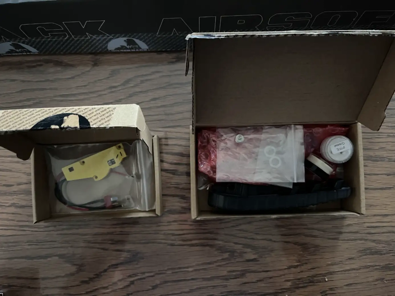 - 1 MDR-X V.3 Silverback Airsoft dans sa boîte (comprenant manuel, mousse de protection, outils et surplus fournis avec la réplique de base), paintjob TAN Airsoft Entrepot.