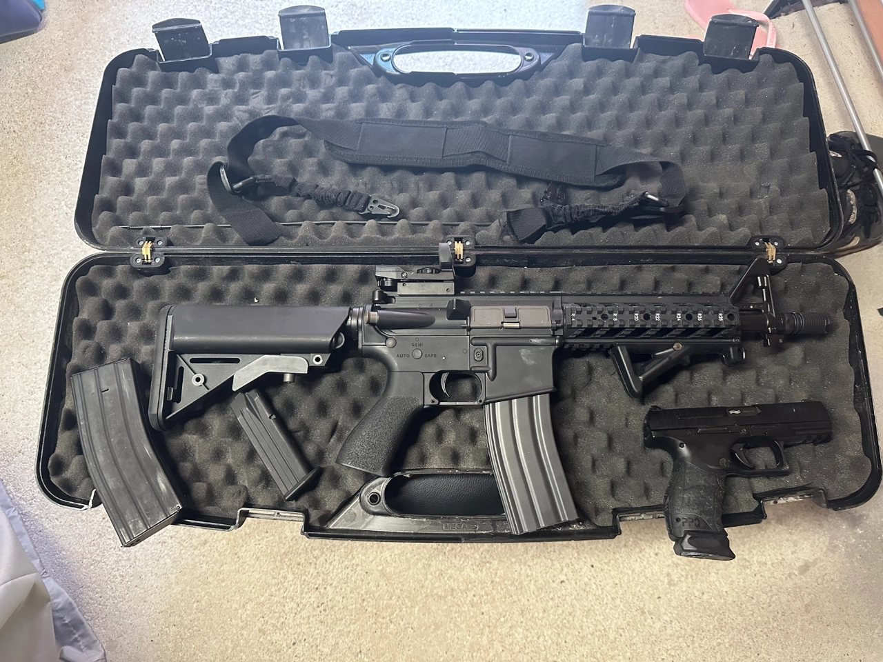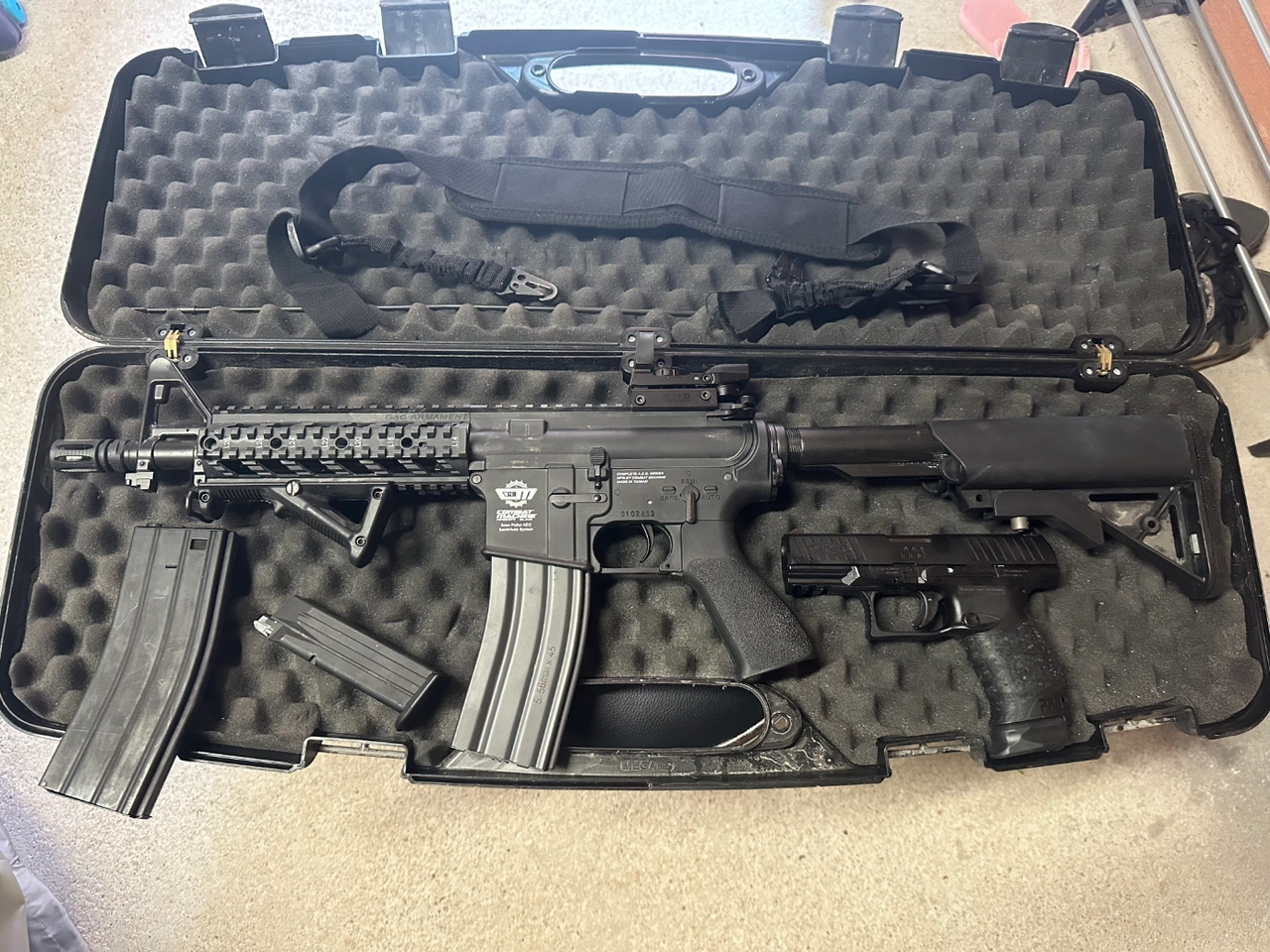 M4/M16 G&G état neuf très peux servis fonctionne très bien je vend le lot complet avec arme de poing et malettes
