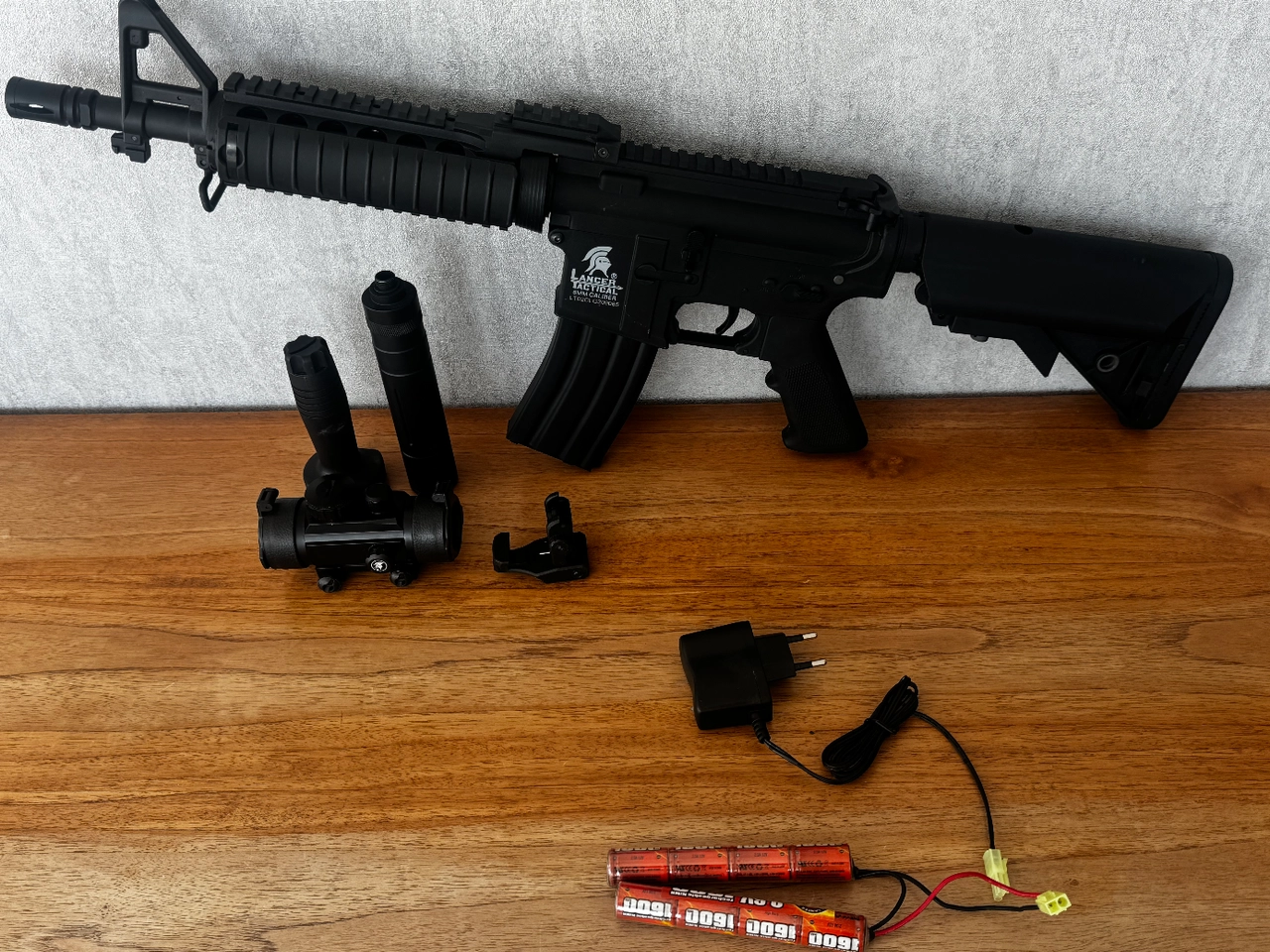 Accessoires montés : lunette, laser, poignet ergonomique, silencieux