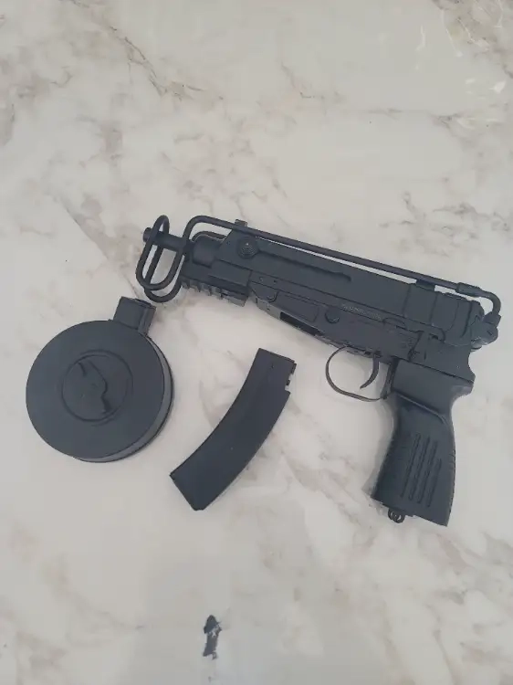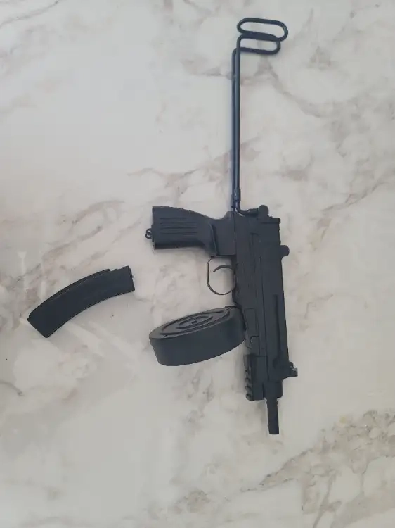 Crosse rétractable et chargeur tambour inclu.