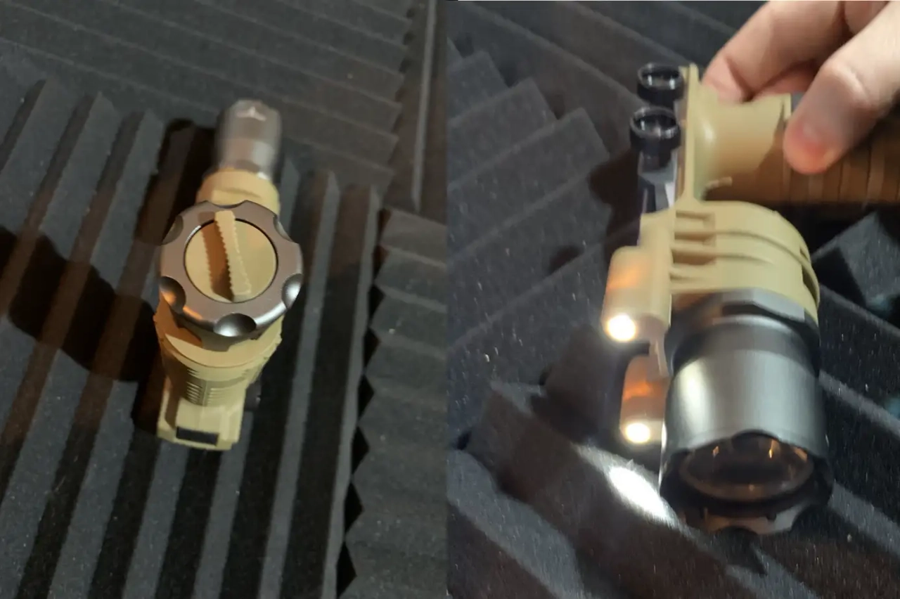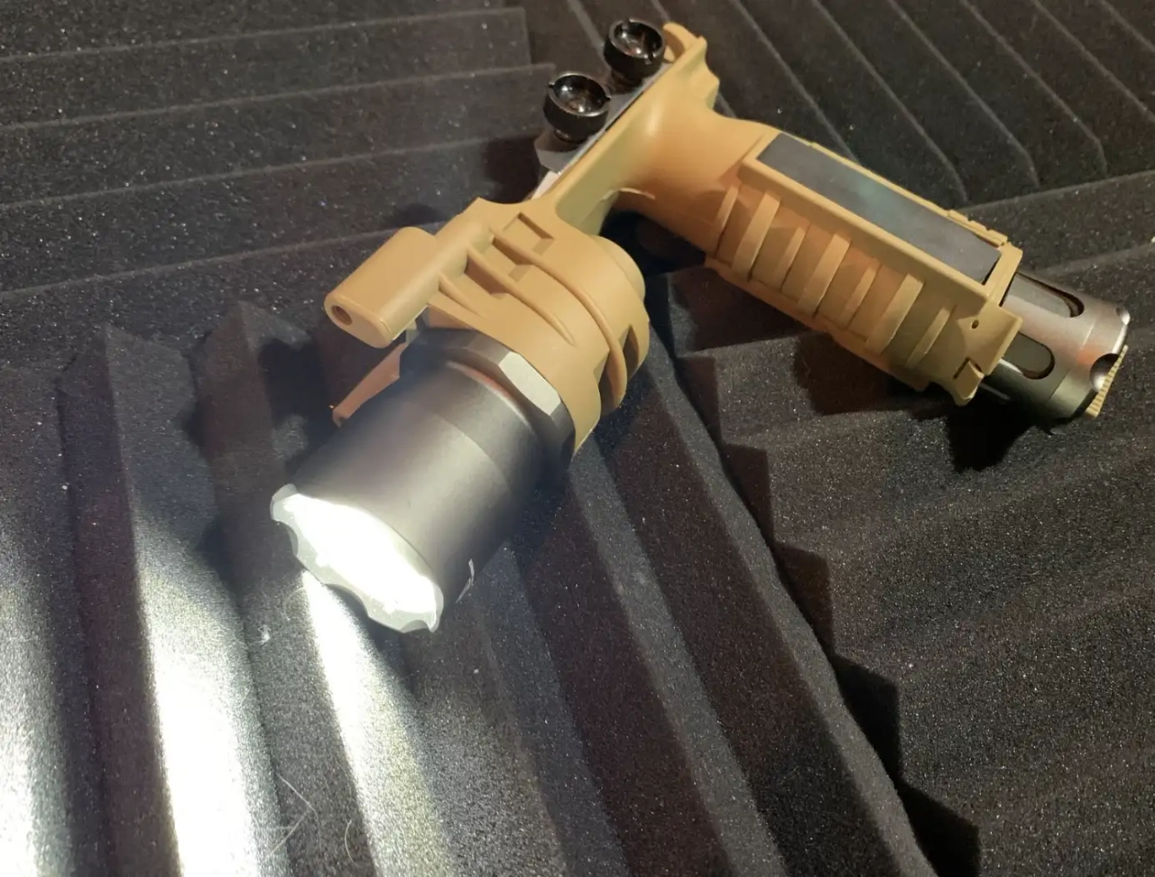 Poignée lampe avec micro switch déporté. Attache rapide picatinny.